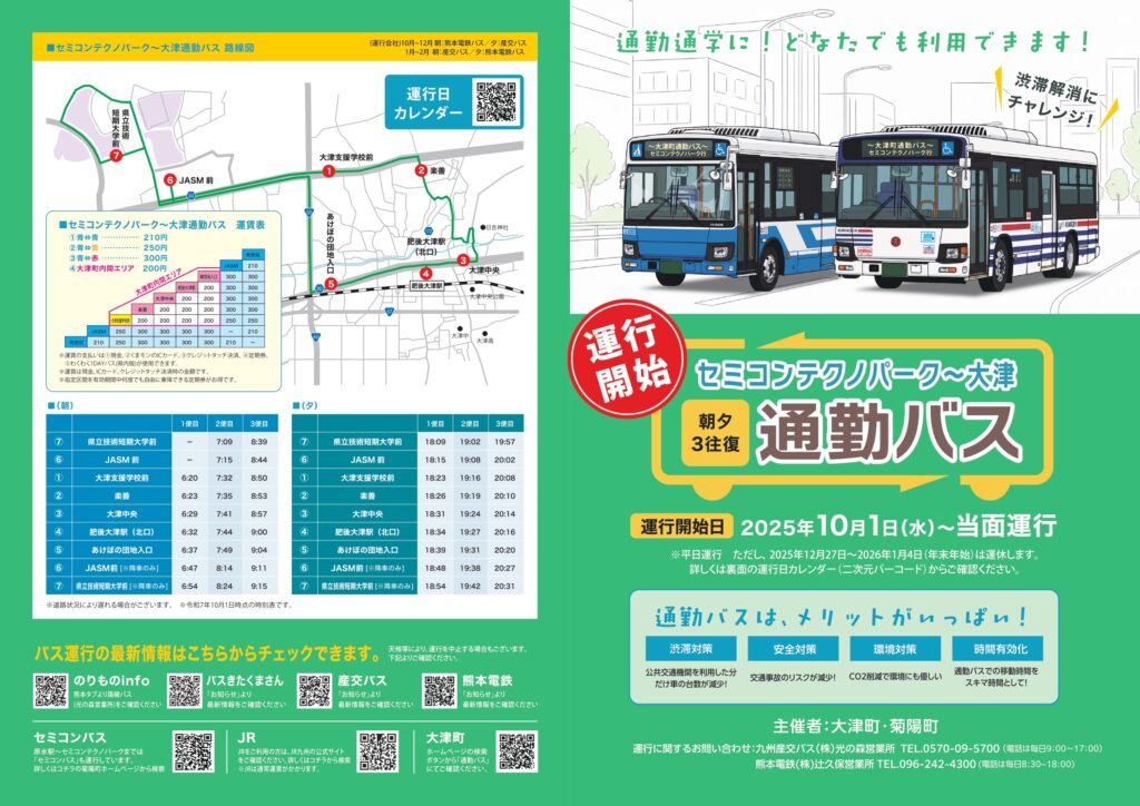 大津町、菊陽町、九州産交バス株式会社、熊本電気鉄道株式会社の四者は、10月1日より大津町~セミコンテクノパ