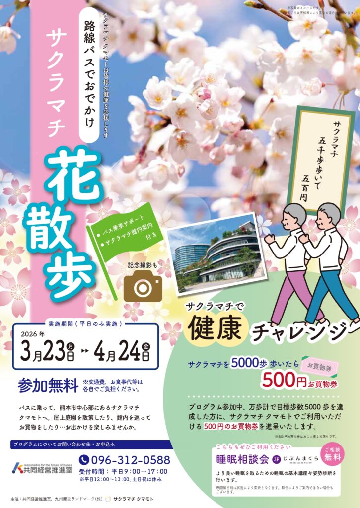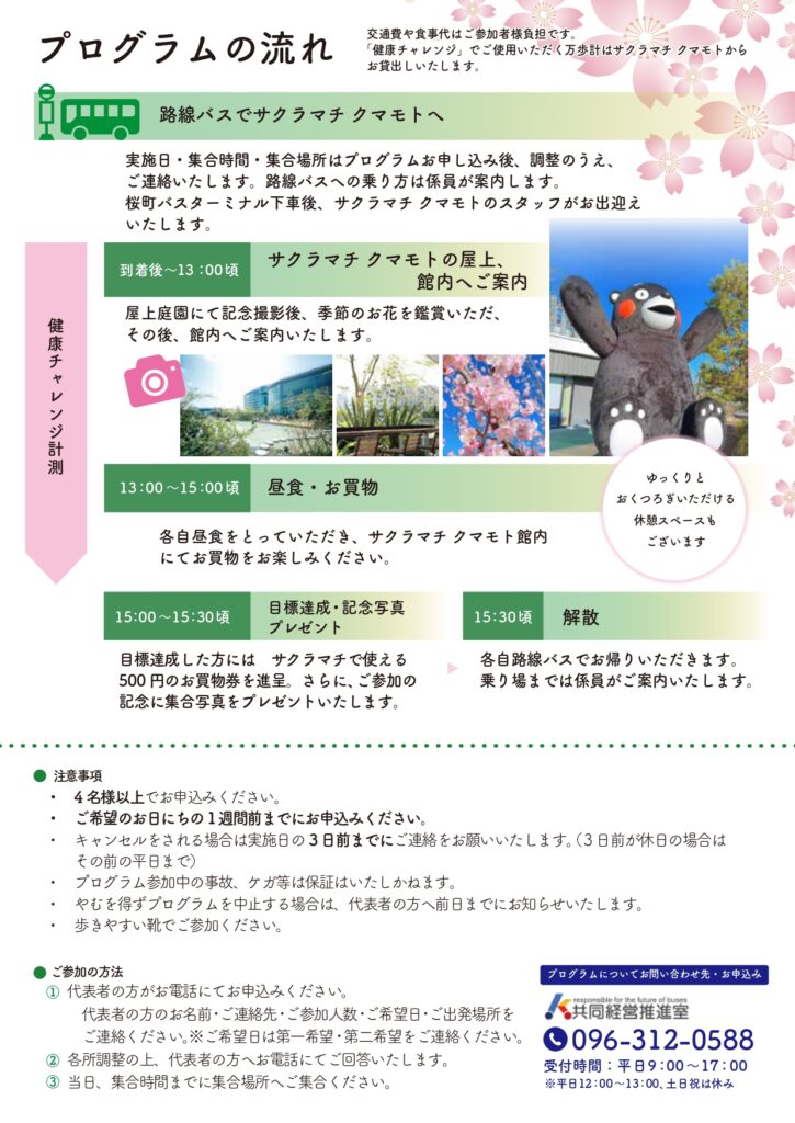 ・この企画に参加するにあたり、路線バスの運賃やサクラマチクマモト館内でのお食事等はお客様のご負担をお願いします。